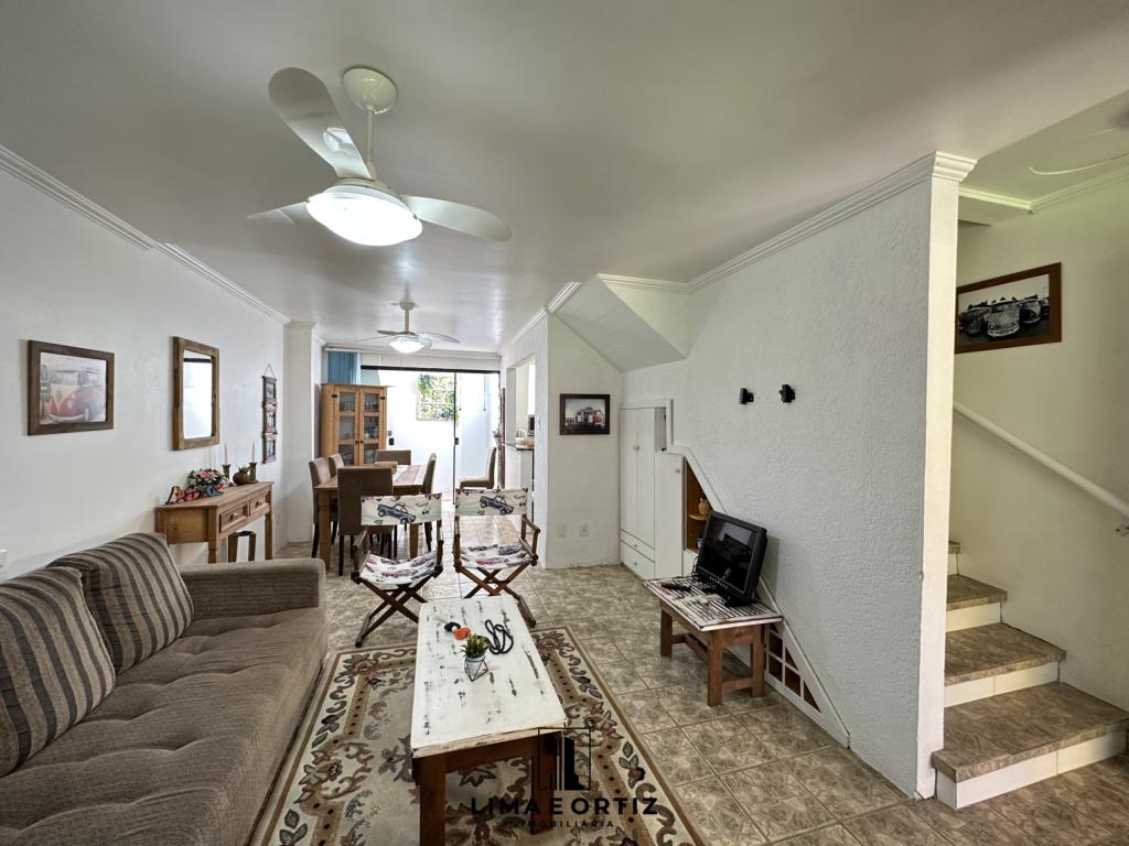 Duplex em condomínio no centro de Imbé. Imóvel com laje de cobertura maciça, 02 ótimos dormitórios sendo 01 suíte, banheiro social, lavabo, living de estar e jantar integrados, cozinha com bancada, área de churrasco com cobertura retrátil, lavanderia, 02 vagas de estacionamento (01 coberta) e espera para split nos dormitórios. Imóvel mobiliado, com ótimo padrão de construção e impecável estado de conservação.