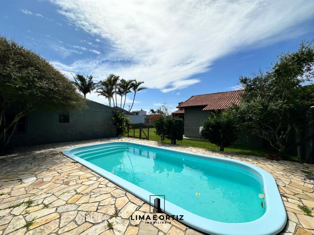 Casa com 03 dormitórios sendo uma suite, sala com lareira, churrasqueira, cozinha, piscina